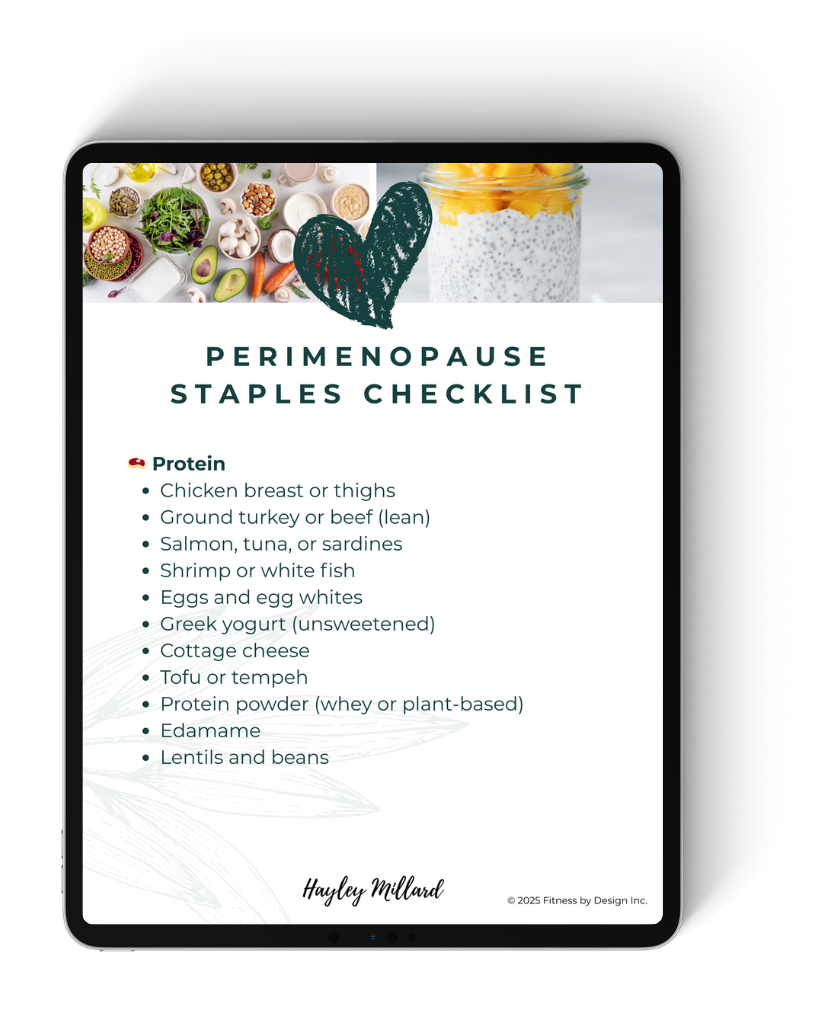 That’s why I’m giving you exclusive access to my 30-day Perimenopause Recipe & Meal Guide. It includes weekly high-protein, high-fibre meal ideas so you stay satisfied, supported, and never stuck in a boring or restrictive meal plan.